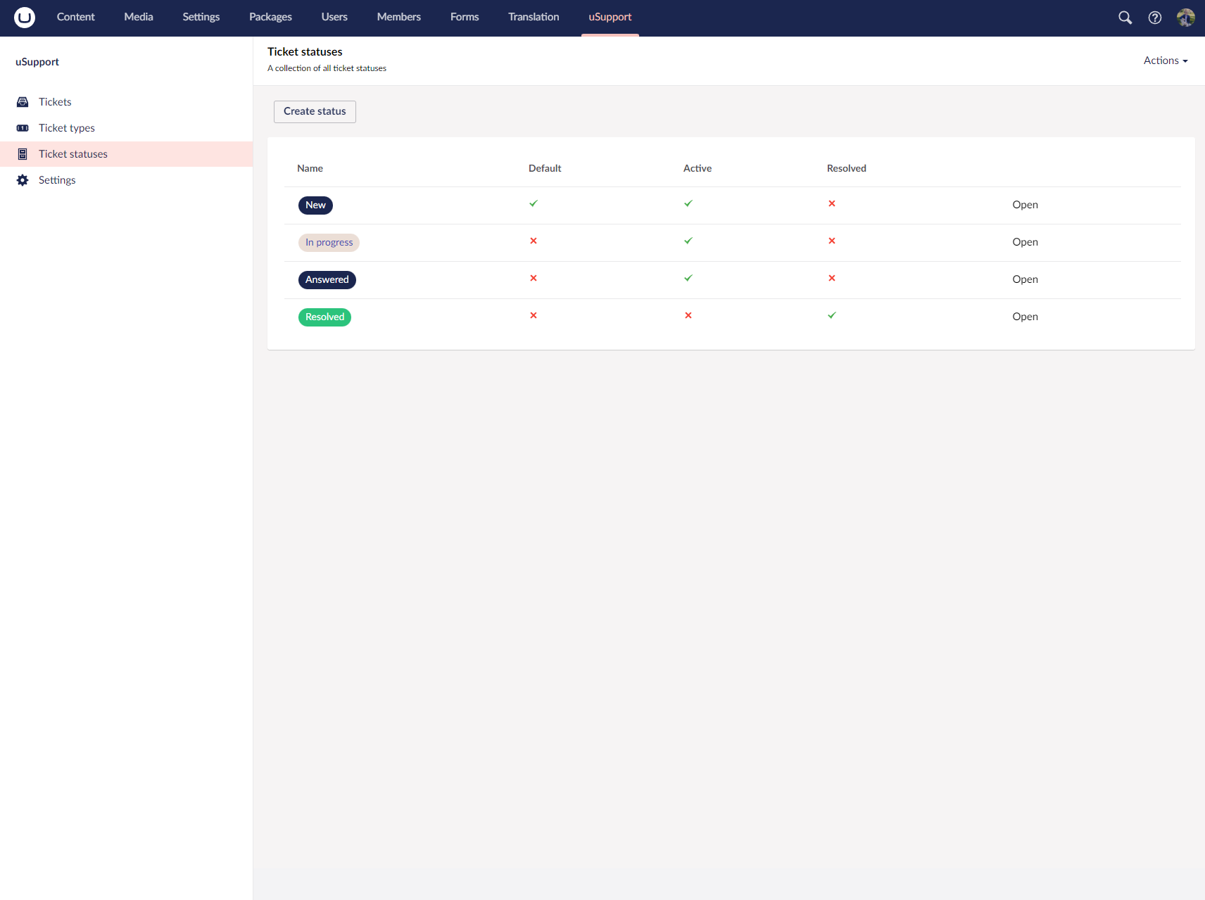 Ticket statuses show where a ticket is in its lifecycle and make it easier for users and support staff to understand whether work is still active.